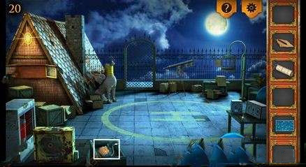 13、回到主画面,用刚刚拾取的铁钩将左下角的木箱打开,拾取里面的火药和引线。