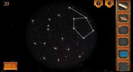 21、点击望远镜口查看星星,使用钢笔将提示中的星星按顺序点击出来,得到一张图。