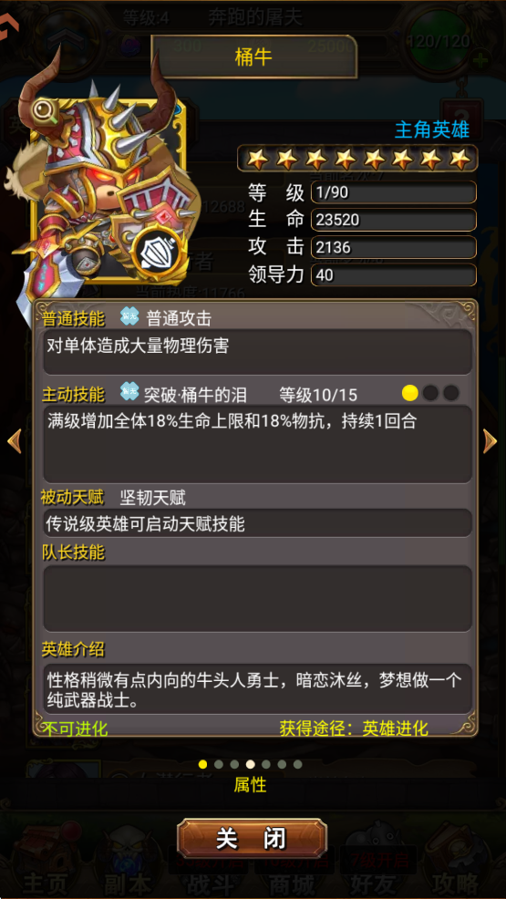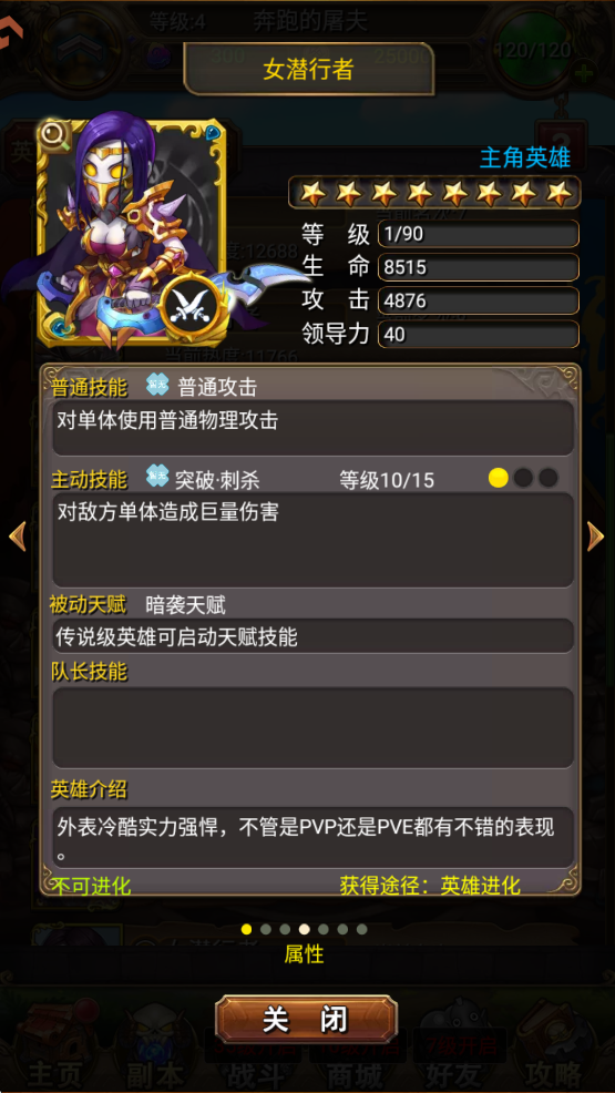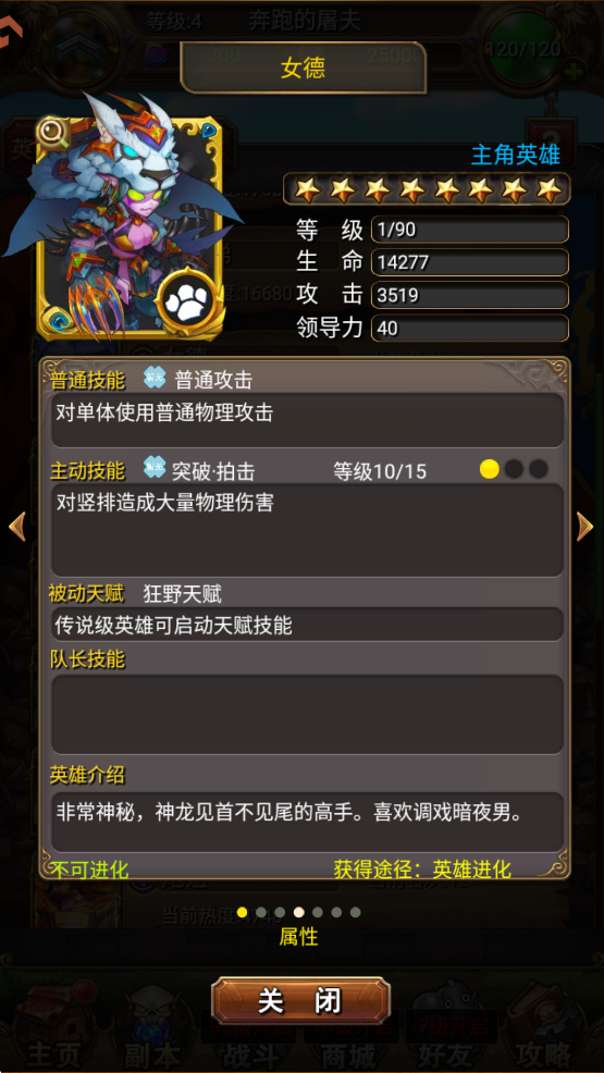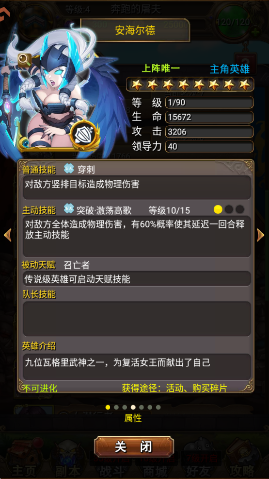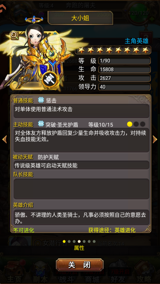 同样一个职业,战斗技能并不一样,比如骑士,有加血的奶骑,也有血厚的防骑。点击英雄头像,可以看到每个英雄的详细技能。