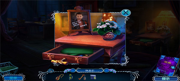 1、玩家进入首先点击床头柜位置,获得任务笔记本;