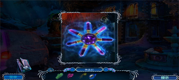 6、使用保温杯里的热水融化汽车后面的冰,拿走布,在树洞里拿走塔罗牌盒子,解锁塔罗牌收集功能,在右边喷泉旁边赶走乌鸦,拿走细枝和没电的手机;