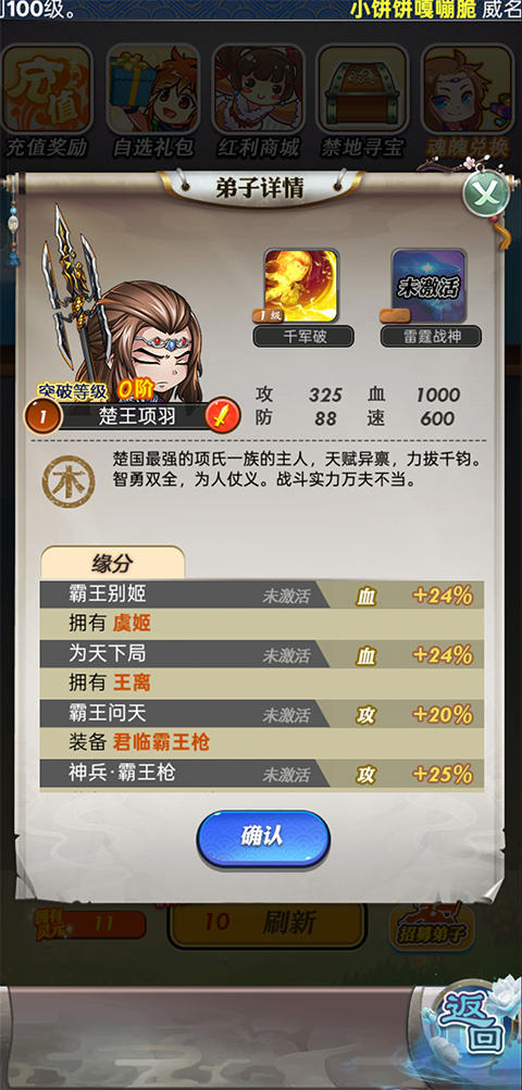 成员:项羽、荆轲、盖聂、姬如千泷、逍遥子