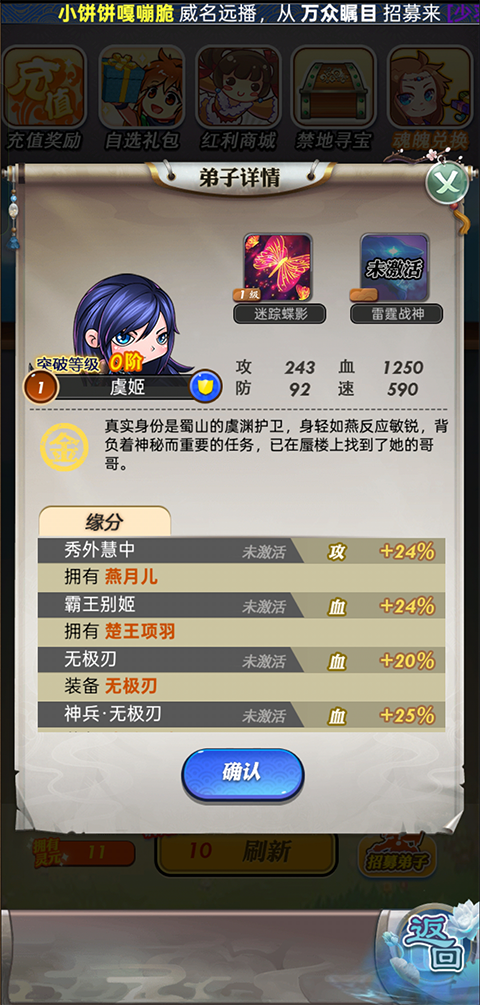 成员:虞姬、焱妃、月神、姬如千泷、逍遥子