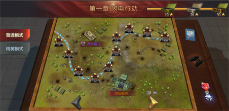 随着等级的提高,过完教程后会发现多出了许多的玩法。在1-10BOSS关卡可以说是玩家所遇到的第一个卡点,这时只需要根据之前新手教程中所操作的步骤再次进入坦克研发,将等级以及配件直接拉满就可以顺利通关了!