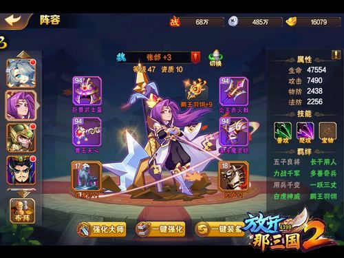 如果说武将的培养和阵容的搭配是最为重要的,那么整体战力的提升也是不可忽略的环节。游戏提供了多种方式让玩家提升自己的战力,包括了装备的升级,专属宝物的培养,配饰的精炼,点亮将星等等,因此在日常的游戏中也得多注意战力的提升。