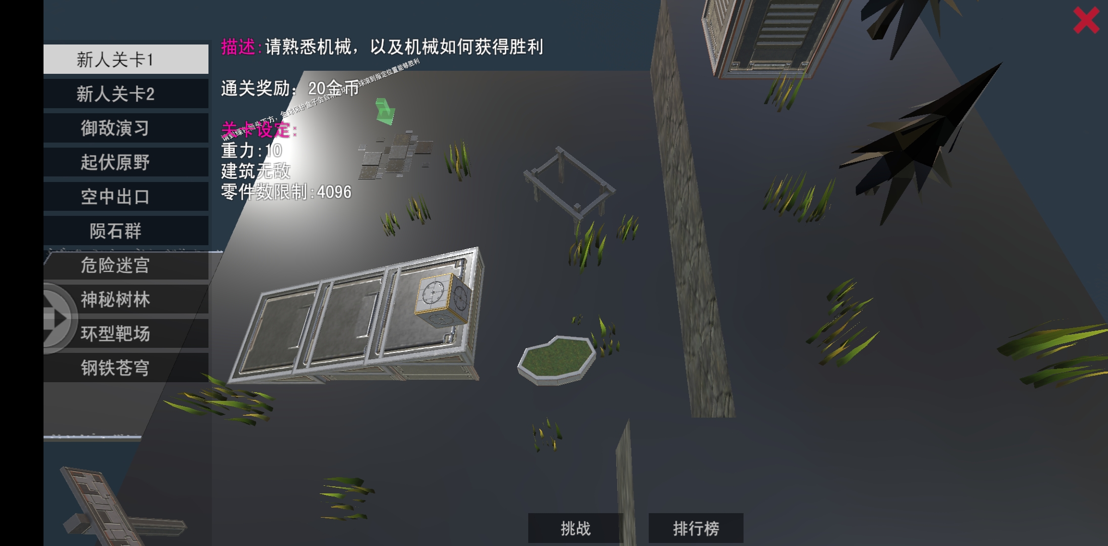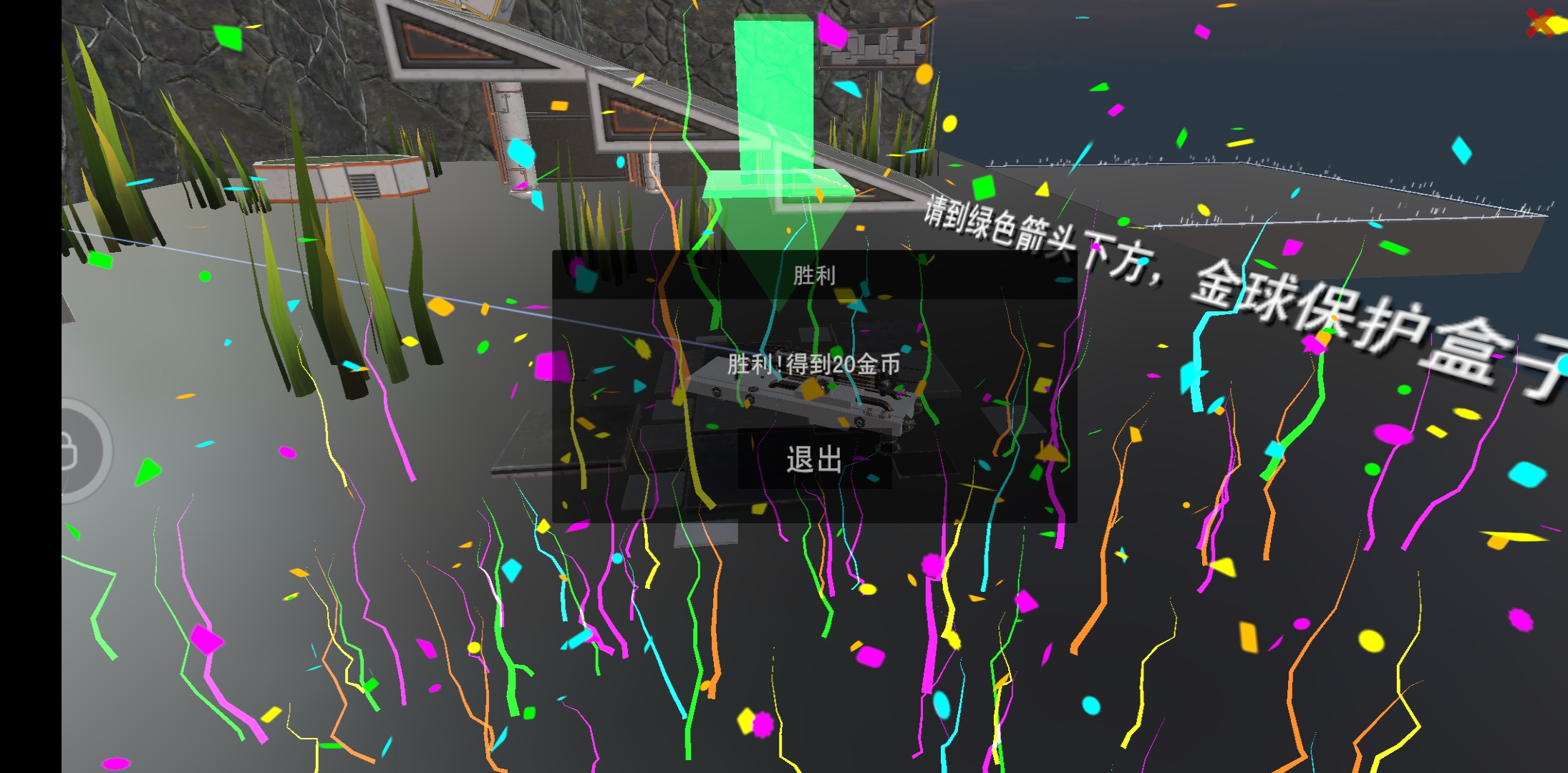 我们来到新手练习,这是新手挑战的第一关,我们可以看到现场有一个斜坡,斜坡上面有我们需要拿到的金球,需要将金球的盒子打碎并把金球带到制定位置即可通关