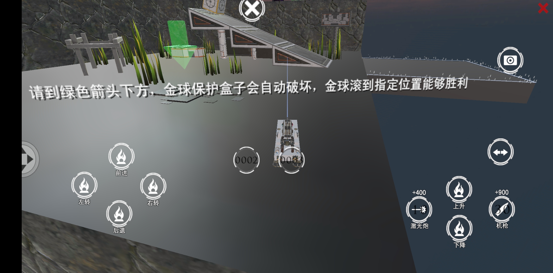 看起来是要过去才能成功击碎金球的盒子,让金球滚到指定位置,那我们开过去