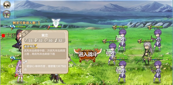 同理,放在最后排就只能攻击到对方最强前排。所以这里考虑到敌方第二排是BOSS角色,需要优先排除的情况最终决定放在第二排,不仅仅因为要给刘备和关羽让出位置并且能攻击到BOSS,更在于张飞本身非常娇小一样。撑不住前排。男主是个特例,男主不论扔在那排都能攻击到敌人第一排。于吉和华佗俩位辅助就扔最后排了,作为辅助最后一排比较靠谱。队伍决定,战斗就正式开启。