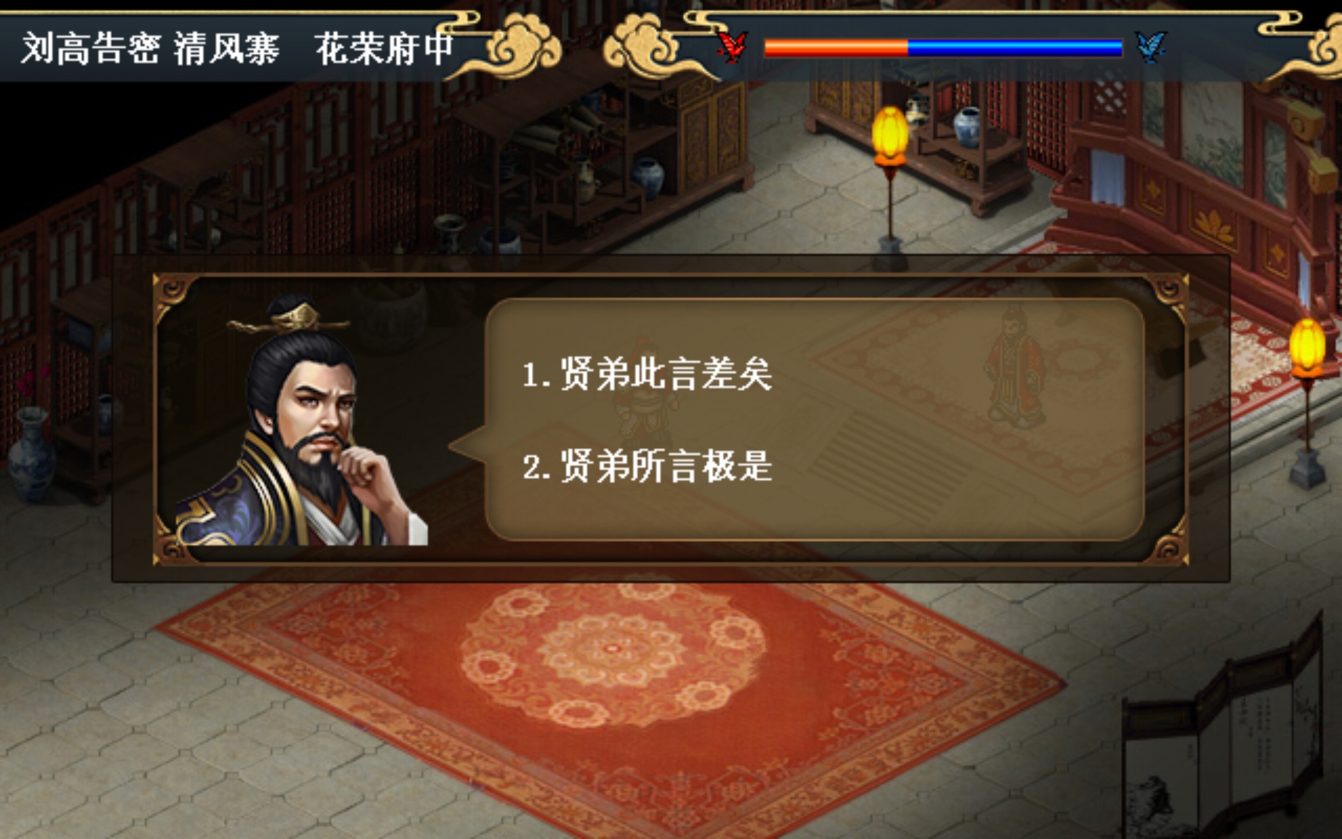 贤弟此言差矣(红)贤弟所言极是(蓝)