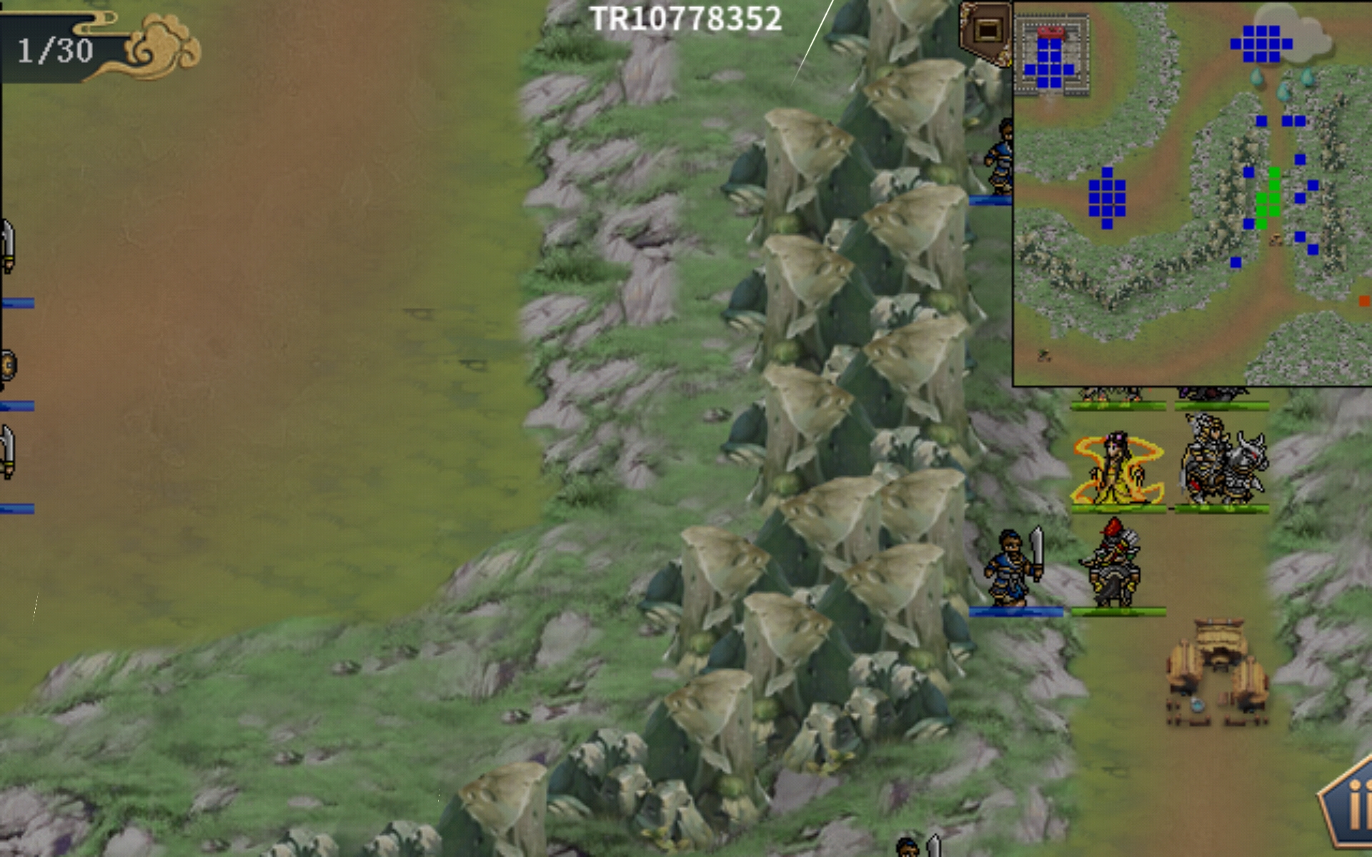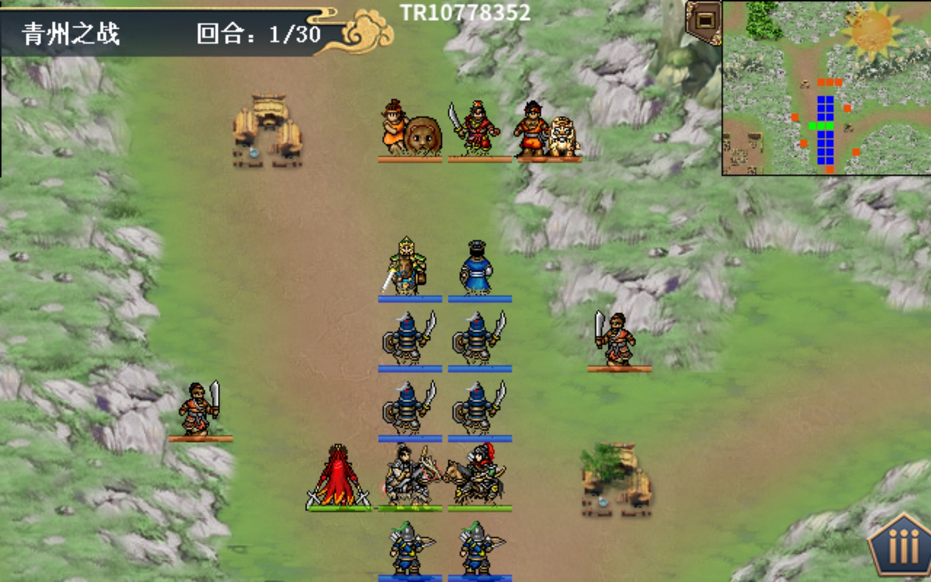 13回合,扈三娘援军在右上角出现,提前站位触发单挑即可。