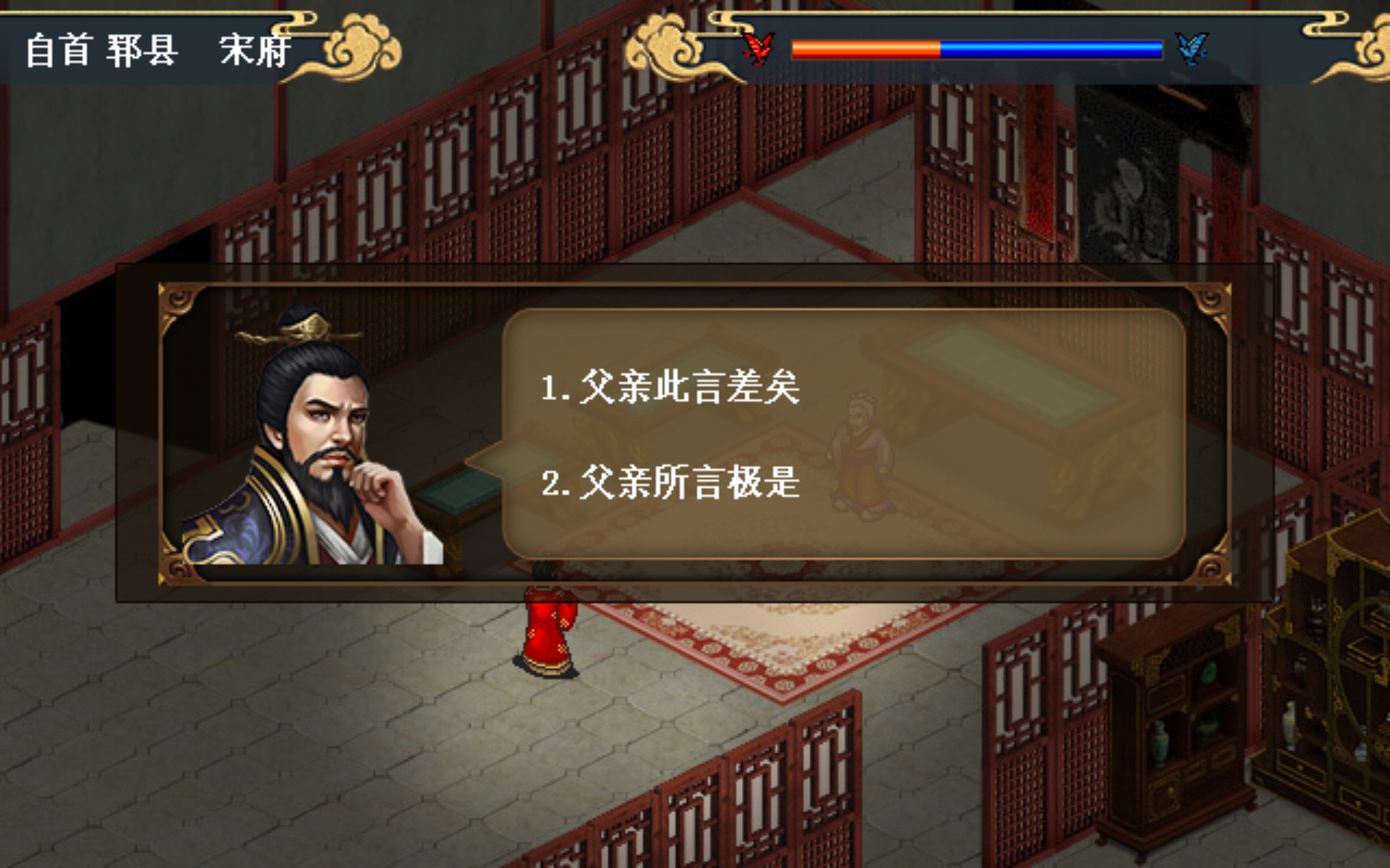 父亲此言差矣(蓝)父亲所言极是(红)