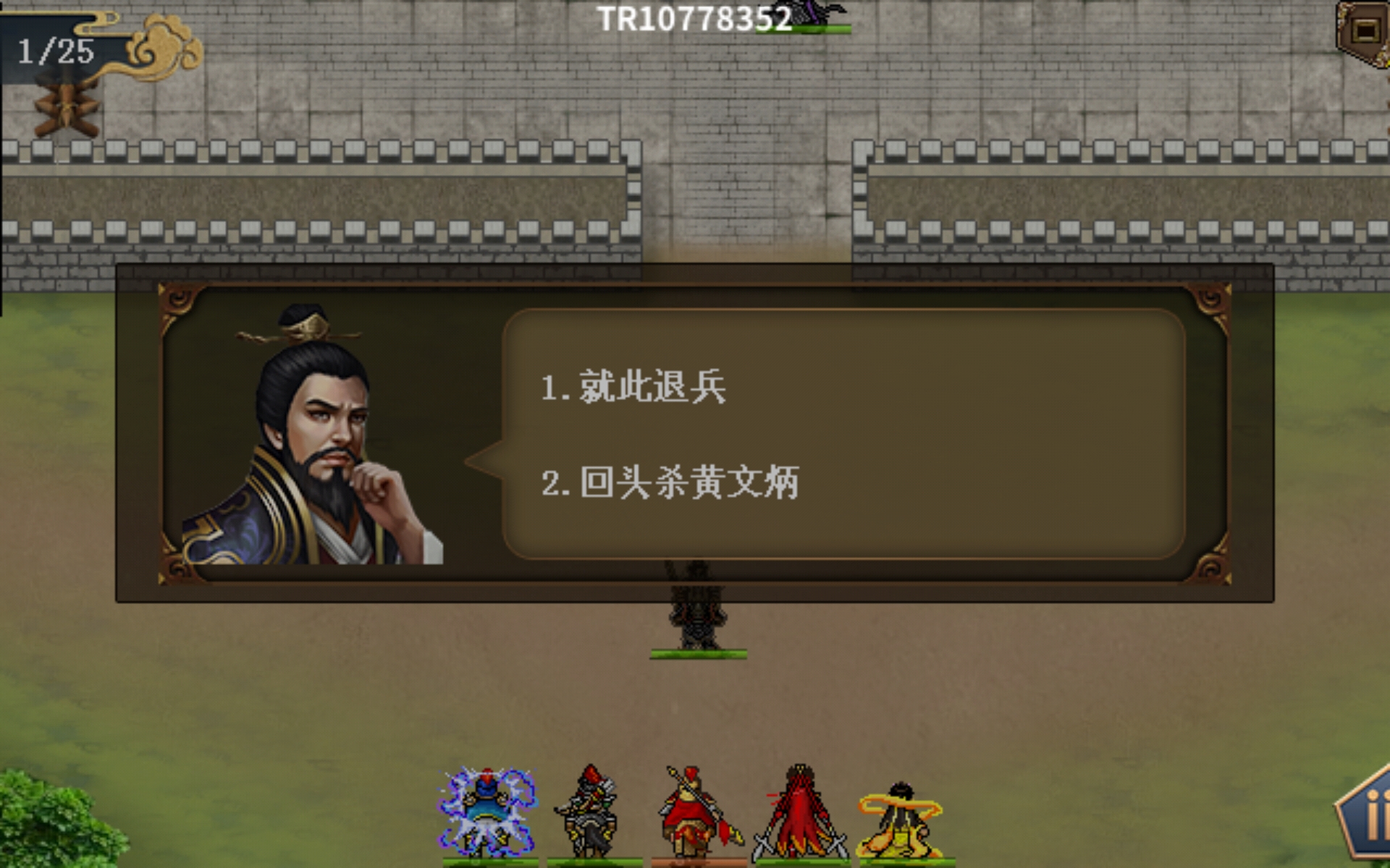 选就此退兵,此关结束。建议有能力就选择回头击杀黄文炳,有漆黑道袍(击退黄文炳)可拿,无聊触发个逗比单挑。