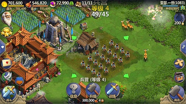 1.除了防御上的军事体现,在联机对战资源掠夺上也能体现文明军事发展的优劣。如何以最少的损失获取最大的收益是每个领主需要思考的,这其中最为重要的便是军团兵种的搭配。不同的文明具有各自特色的兵种,其在远近攻防上都有所差别,在军事发展前必须对自身文明的特色兵种深入了解,根据特色兵种选择不同的兵力搭配。