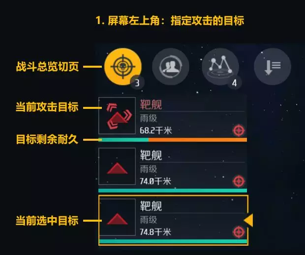第二银河中的战斗可以理解为一种“两步命令”:首先指定您想攻击的目标,然后指定您想使用的武器。