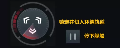 最后,在战斗中您还可以通过点击“锁定”按钮来让飞船自动切入对目标的环绕轨道,或通过点击“停止”按钮来停下舰船: