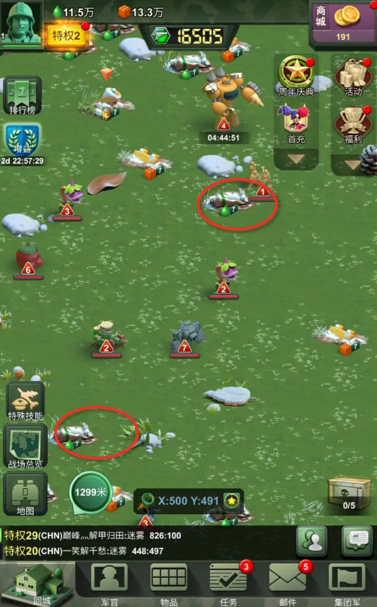 当你组建了一直不错的队伍后,我们就可以出城开始我们的扩张之旅了!我们可以选择采集资源和平发展,也可以攻打黄军等第三方势力获得各类资源,最最最重要的一点是在我们还不够强大的时候一定要打开你的保护罩!不然你很有可能成为其他玩家眼中的“肥肉”。
