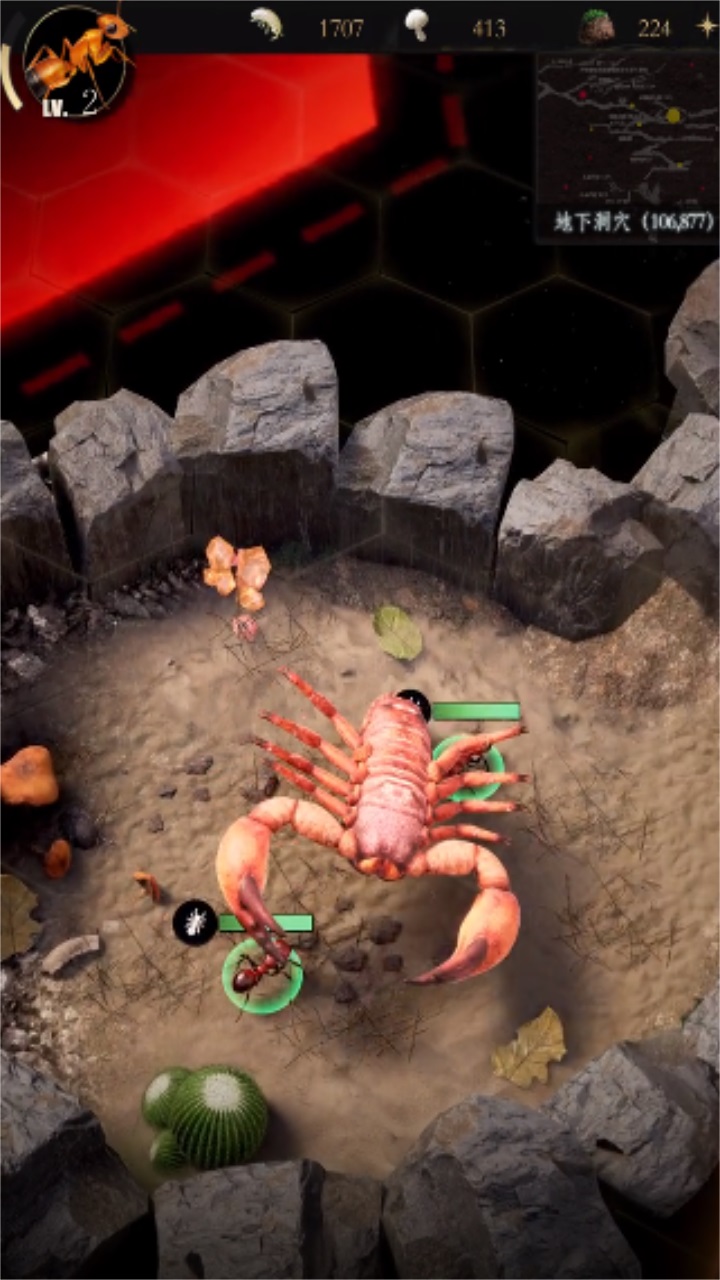 小小蚁国是一款高拟真度的蚁族生存策略手游。玩家将扮演蚁后,从零开始建立和管理你的地下蚁巢,体验真实的微观生态。核心玩法包括挖掘通道、分配工蚁资源、培养兵蚁进行战斗,以及抵御外敌和掠夺资源。你必须发展壮大你的蚁群势力,与其他玩家争夺领地,建立属于你的地下王国!